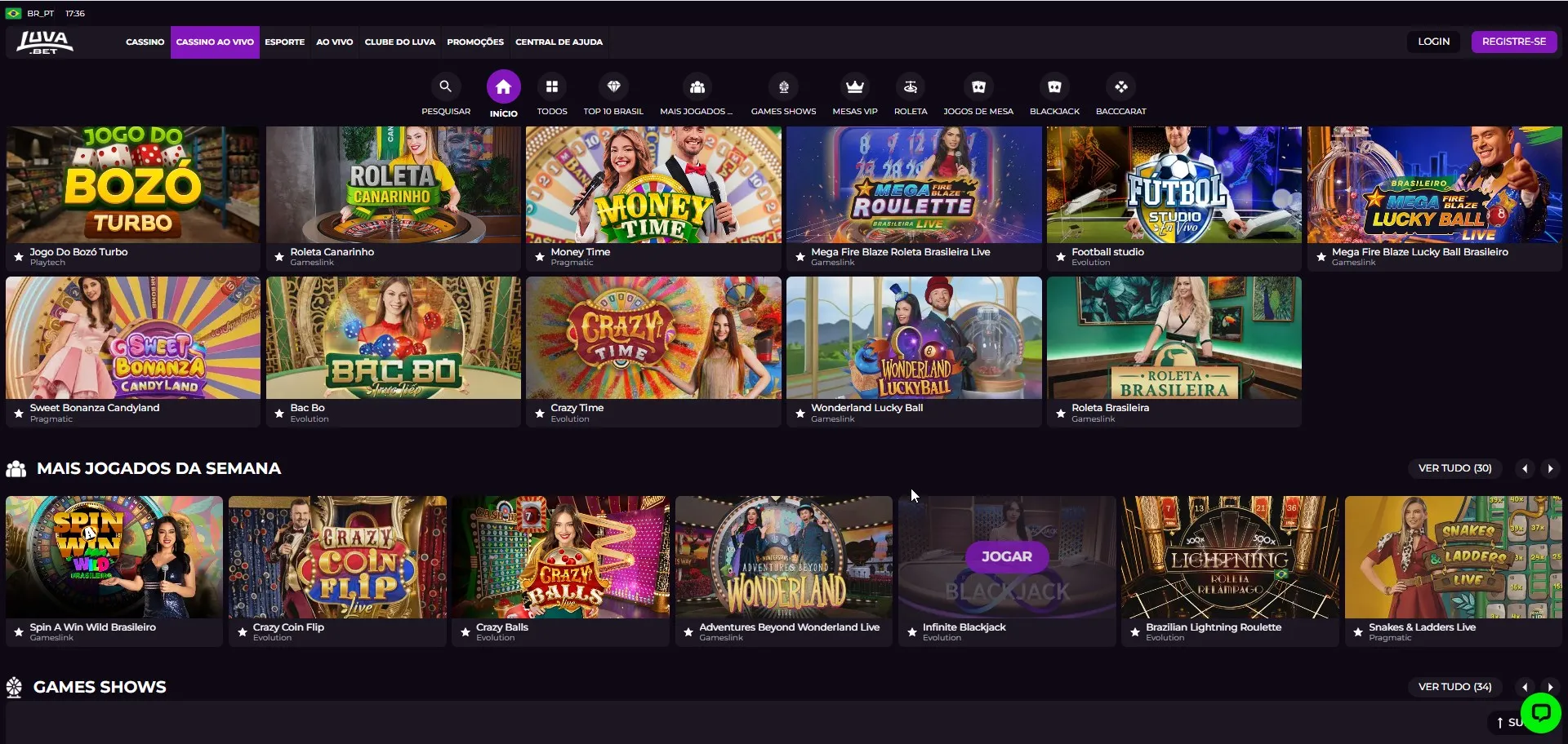 Quais jogos a Luva Bet tem (luva bet jogos / casino online)?